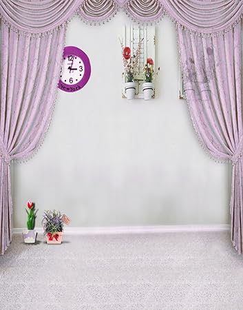 5x7ft Rosa Vorhang Blume Uhr Wohnzimmer Hintergrund Amazon De Elektronik