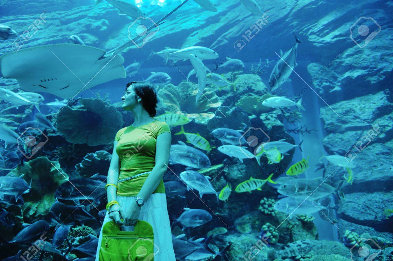 Junge Frau Mit Grossen Blauen Fisch Im Aquarium Withmany Hintergrund Lizenzfreie Fotos Bilder Und Stock Fotografie Image 13112417