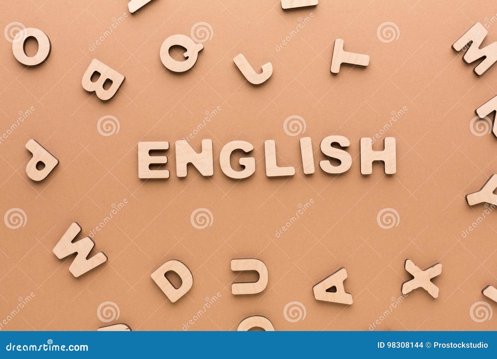 Wort Englisch Auf Beige Hintergrund Stockfoto Bild Von Alphabet Idee 98308144